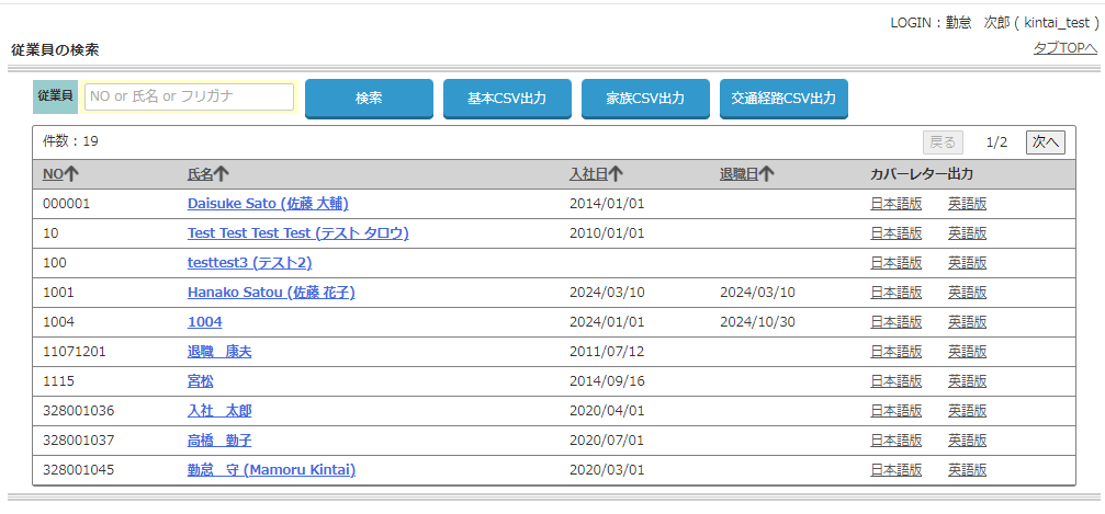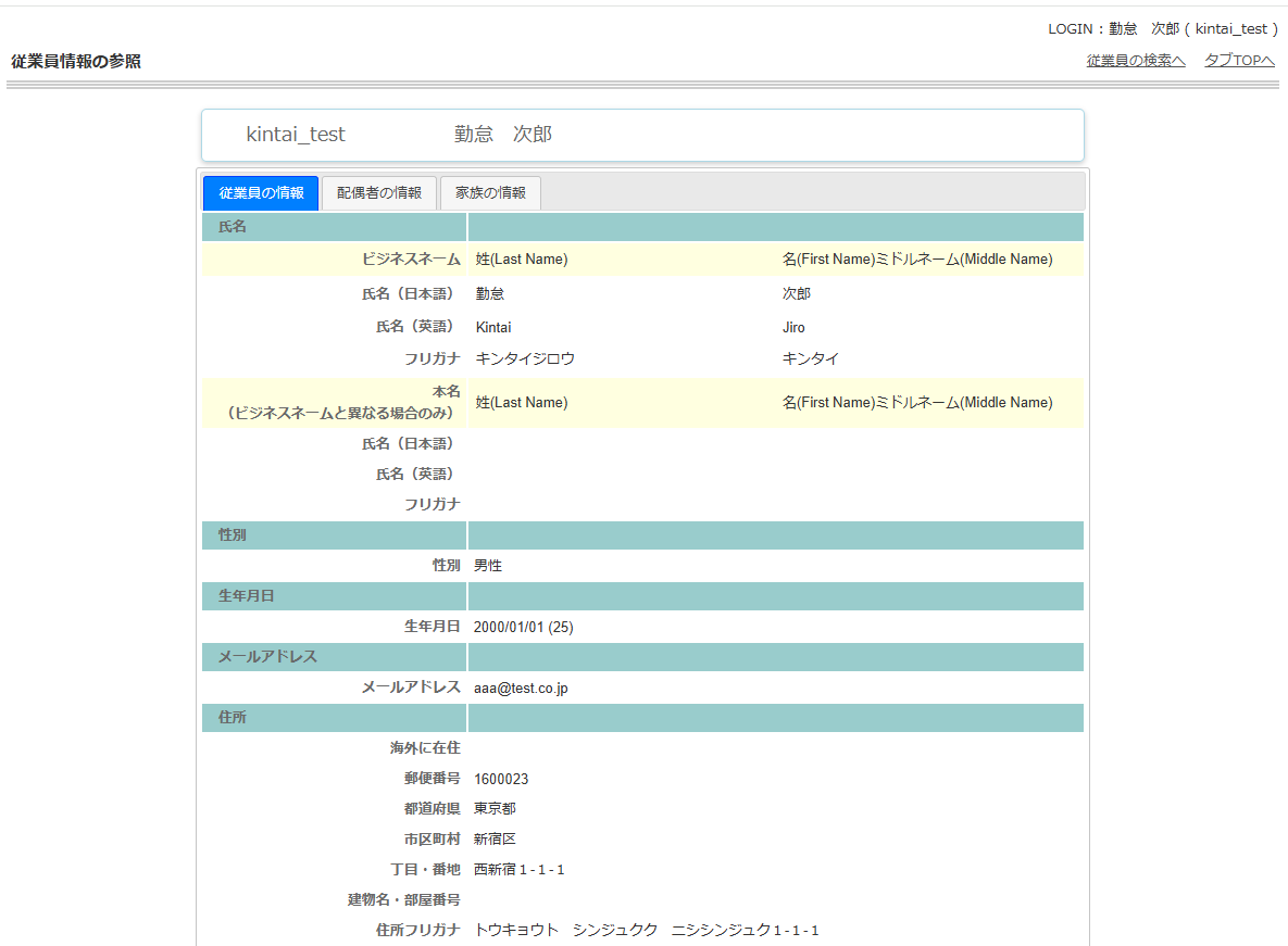 従業員に関する基本情報や人事労務、経理処理に必要な人事データを一元管理することができます。住所や社会保険情報は勿論、VISA情報からマイナンバーまで従業員は自身の情報を参照することができます。