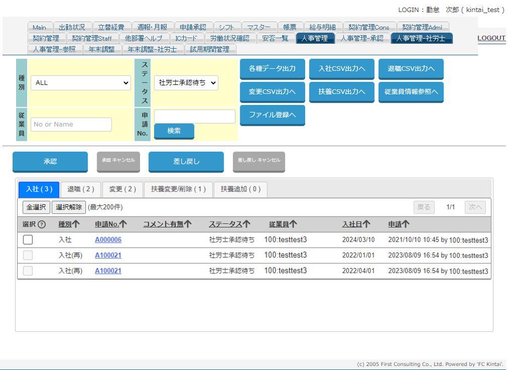 - 入社時や退社時に必要な情報を出力したい