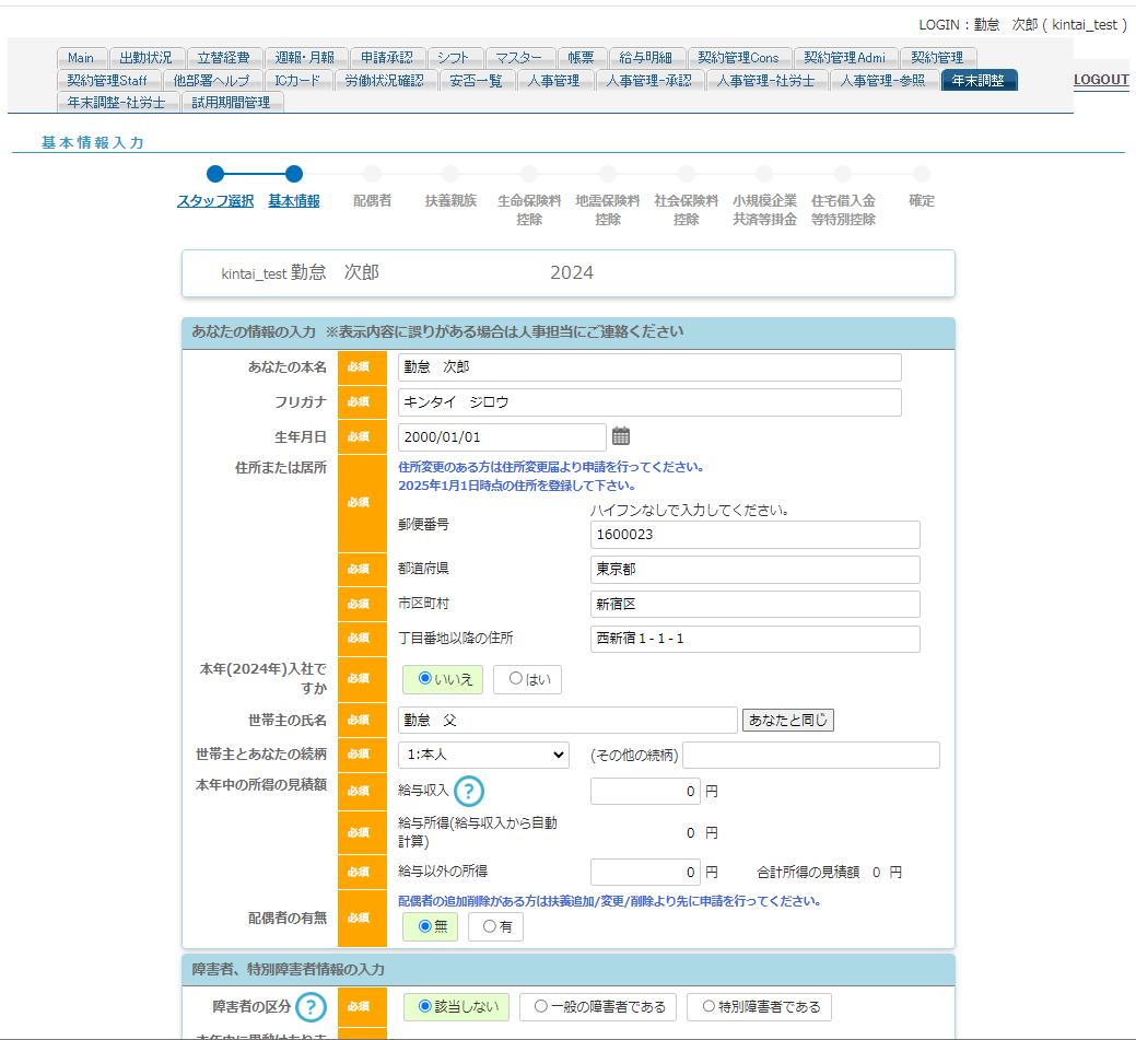 年末調整入力