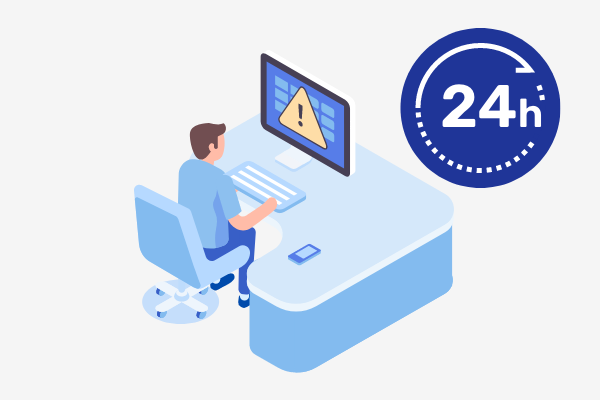 各ユーザー様が利用できる状態にあるかを分単位でチェックしています。異常がある場合はデータセンターより弊社担当者にメールおよび電話による連絡が24時間届くしくみとなっています。
