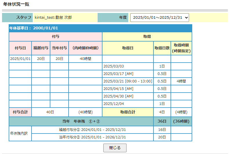 - 従業員ごとの付与日・繰越日・消滅日を自動管理