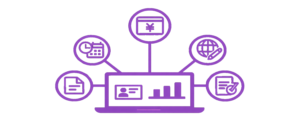 FC勤怠は、派遣業に特化した機能(派遣先ごとの履歴管理や一括メール送信など)を搭載し、複雑な勤怠管理業務にも柔軟に対応。また、請求・給与システムとのスムーズな連携により、契約管理・人事管理とあわせて勤怠管理まで一元化でき、業務の効率化と人的ミスの削減を実現します。