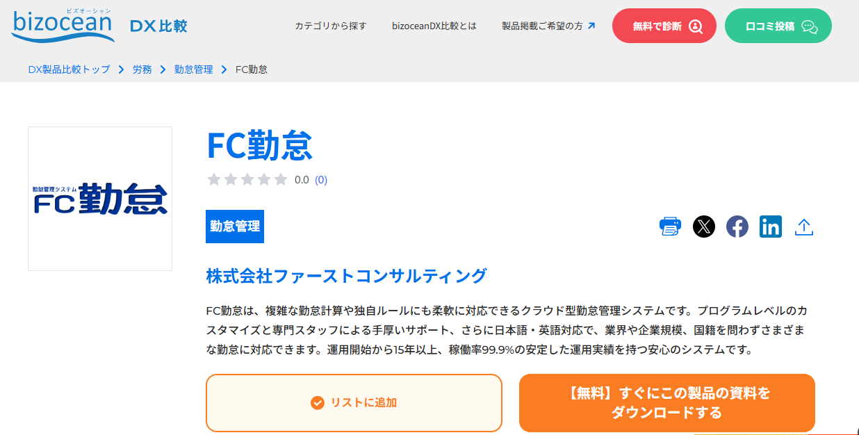 この度、弊社が提供する「FC勤怠」が、中小企業向けDX支援サービス比較サイト「bizoceanDX比較」・・・