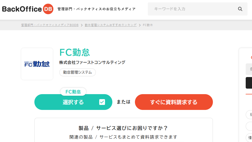 管理部門向けWEBメディア「BackOfficeDB」に、「FC勤怠」が掲載されました